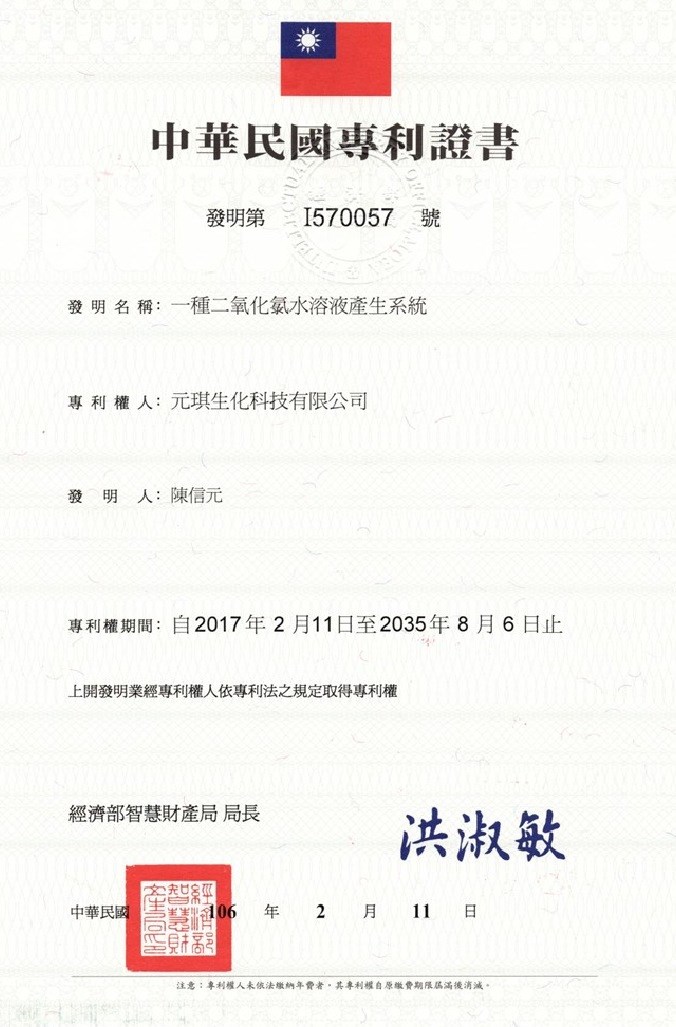率先開創氣態二氧化氯產生技術,藉由電解食鹽水後直接將二氧化氯氣體抽取並導入去離子水中存放,形成專利氣態二氧化氯抗菌液 (GCD分子功能氧專利),生產過程無添加及混合副產物,應用於多元產業。
